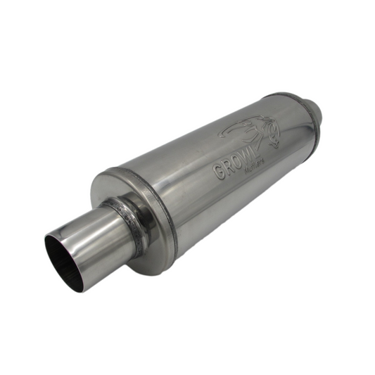 GASO Round Muffler 3" Inch ID Centre/Centre 5" Diam x 12" - Straight Through Chambered