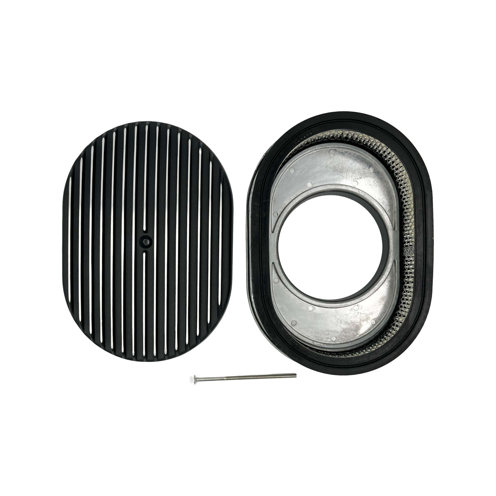 12" Oval Air Cleaner Full Finned Black Cast Aluminium with High Flow Filter