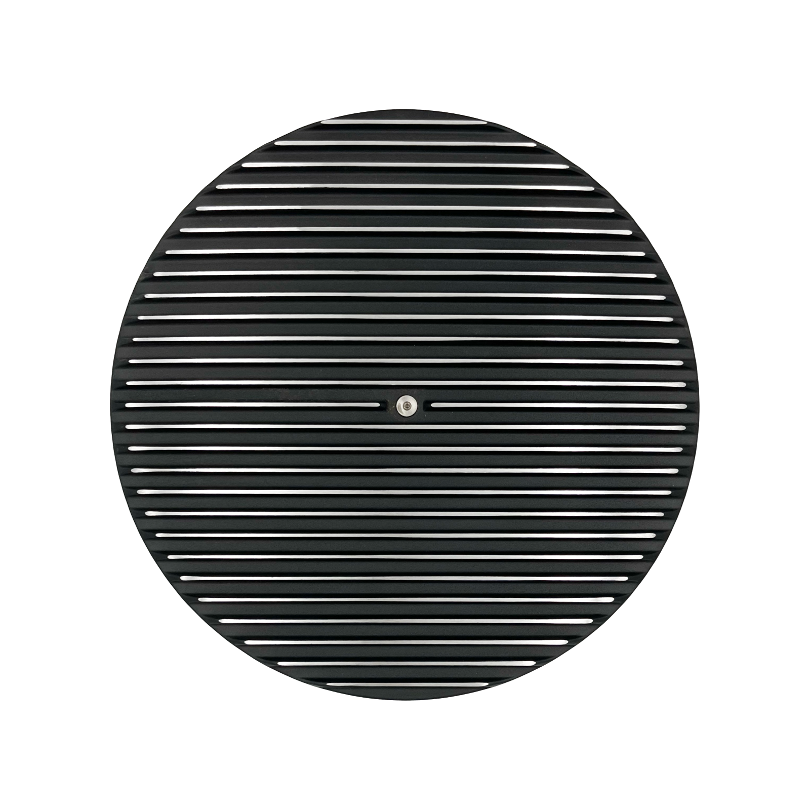 14" x 3" Round Air Cleaner Full Finned Black Cast Aluminium 5-1/8" Neck w Flat Base