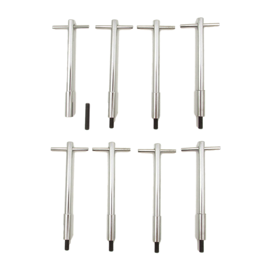 Secure your valve covers with this complete set of 8 chrome steel T-bar bolts, designed for quick and easy installation on SBC 350 327 307 283 V8 engines. The adjustable screw makes it simple to get perfect orientation for show-car setups.