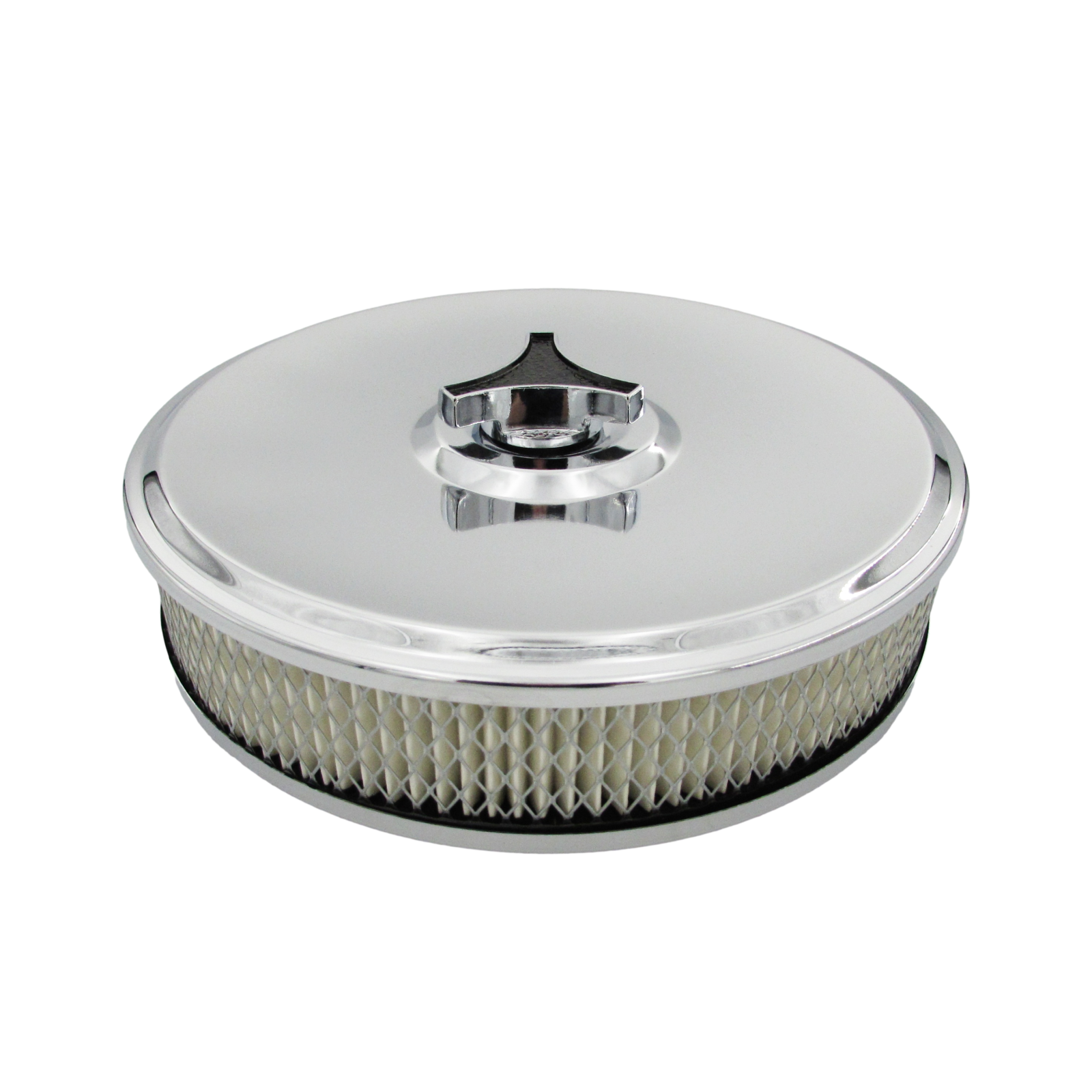 - Speco 9" x 2" round chrome air cleaner - high-flow paper filter element, nostalgic wingnut, 2-5/8" neck fits 2-barrel WW Stromberg and Carter BBD (A9258)
