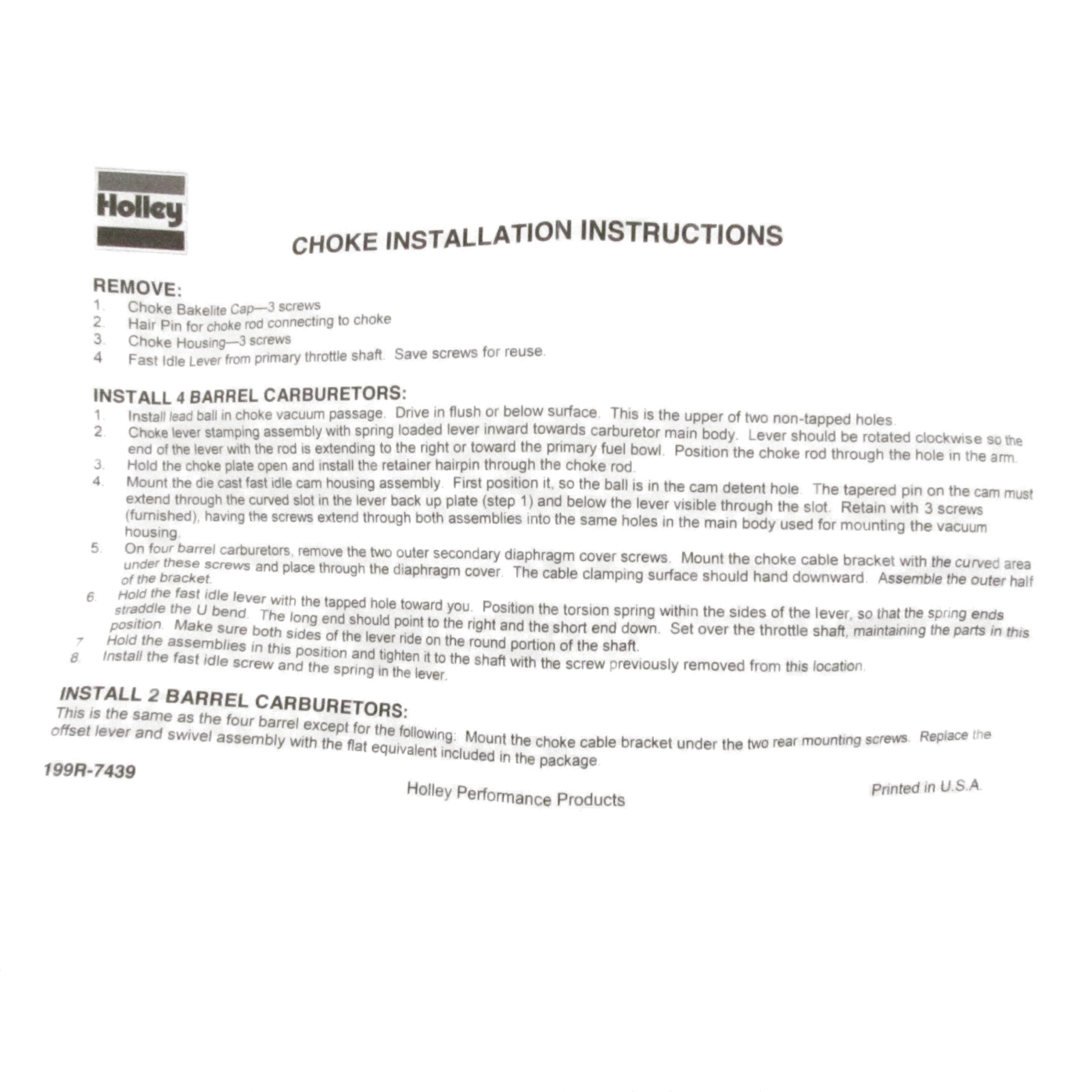 - Manual Choke Conversion Kit – Converts electric or automatic choke Holley carbs to manual hand choke operation.