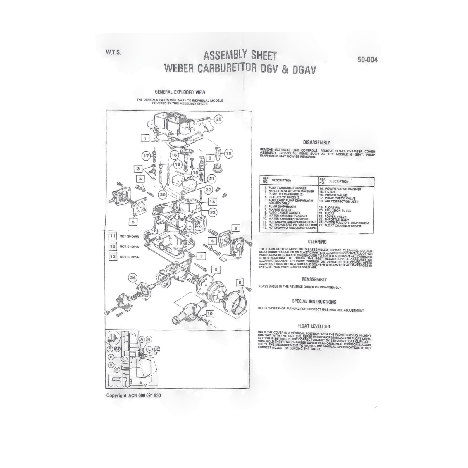 - Complete rebuild kit for Weber 32/36 DGV and DGAV carburettors