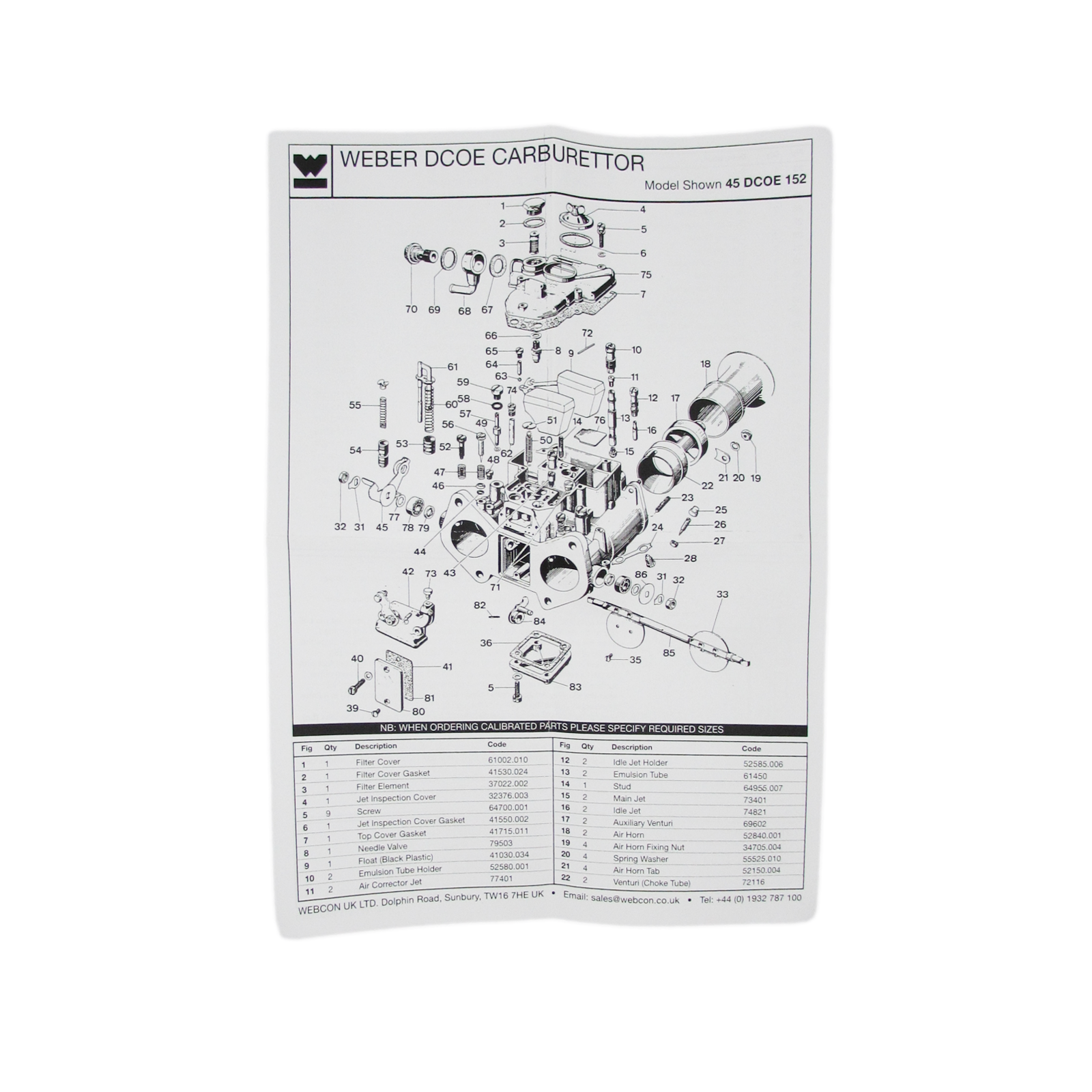 - Premium rebuild kit designed specifically for Weber 45 DCOE carburettors
