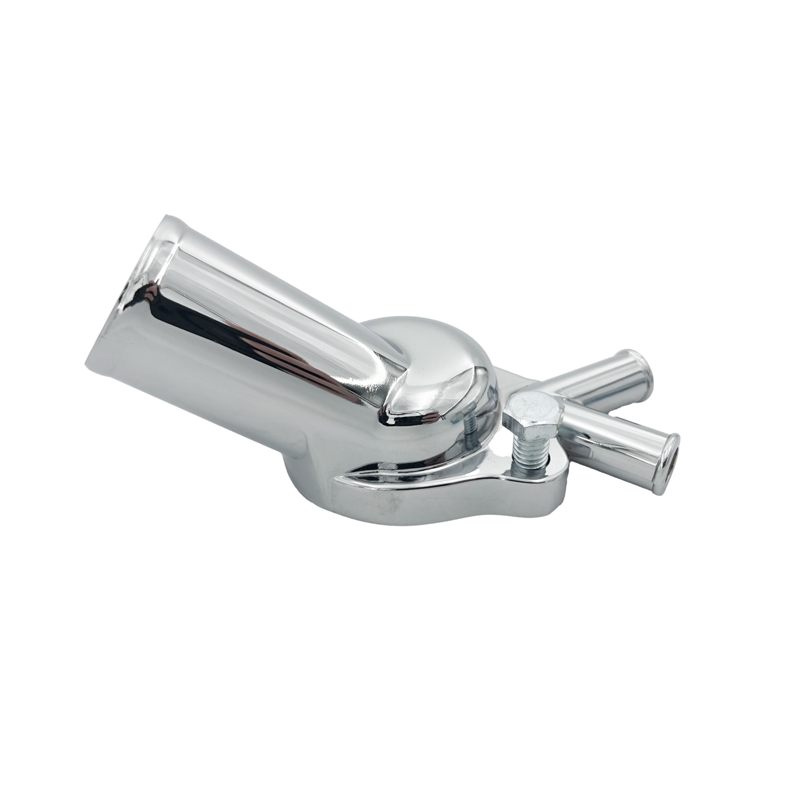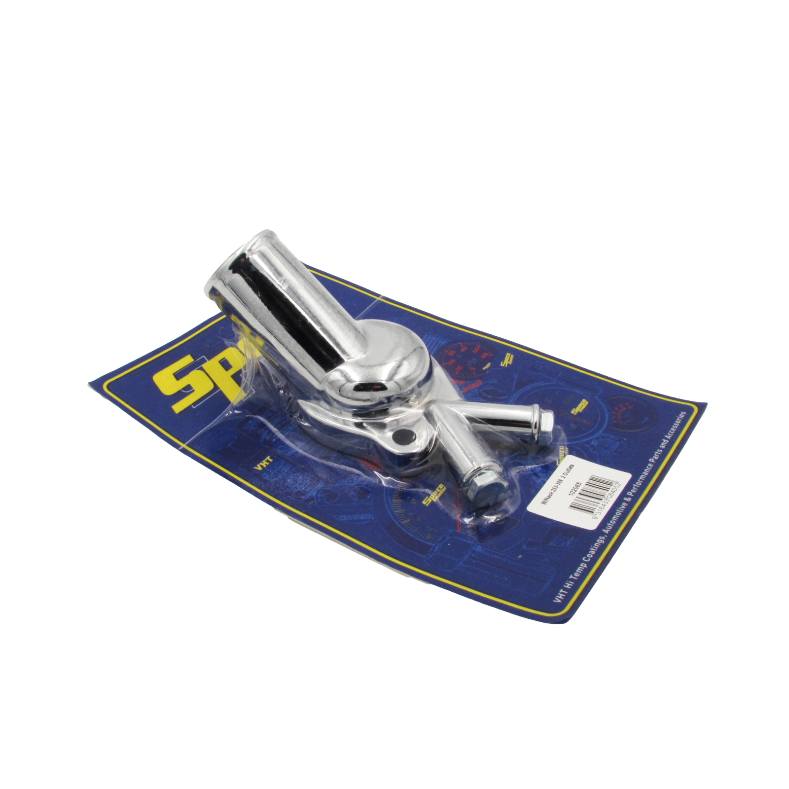 This Speco chrome thermostat housing features a twin outlet design, making it ideal for Holden V8 engines running additional coolant lines. Precision manufactured for a secure fit, it replaces the factory water neck and includes a polished chrome finish for a premium look.