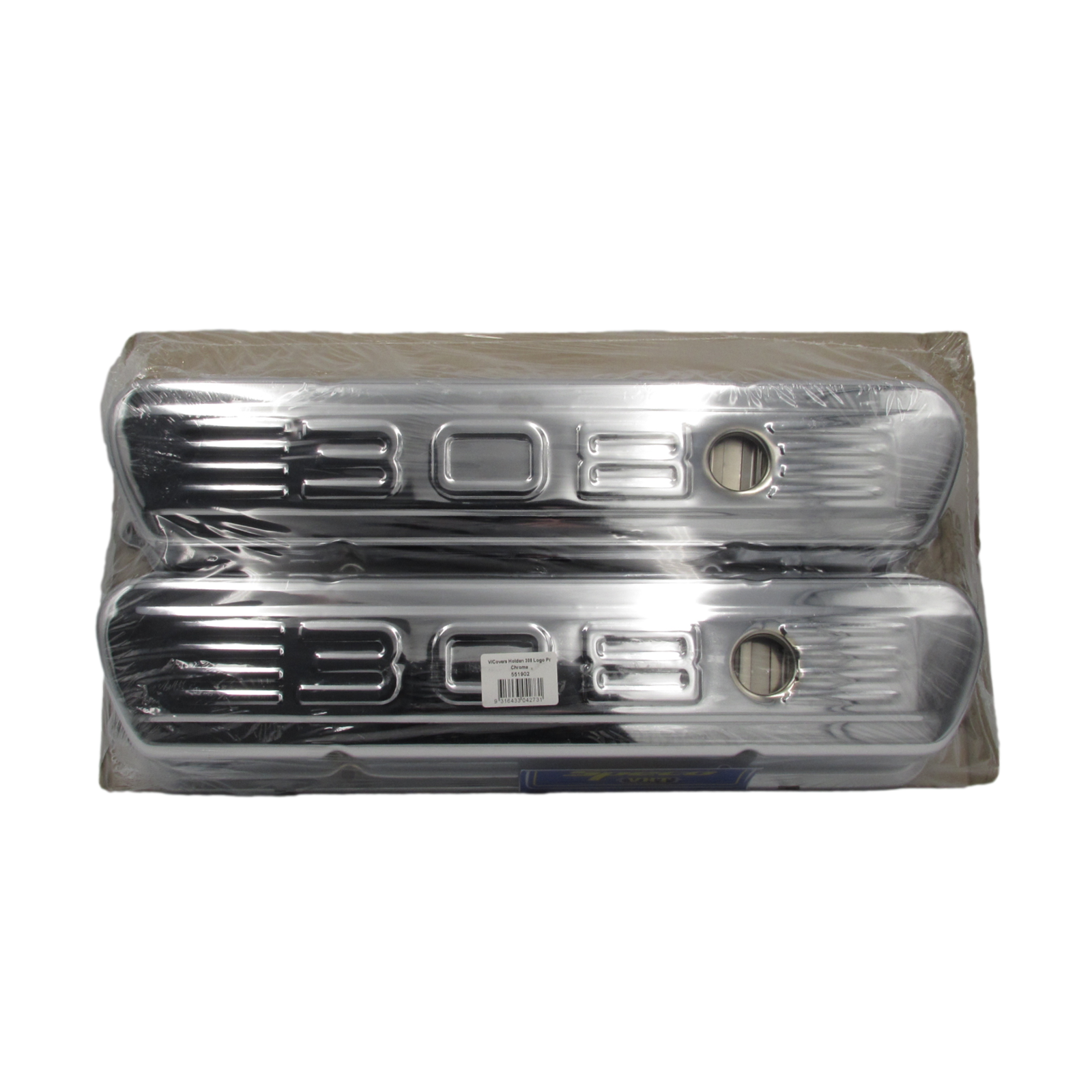 Speco Chrome Valve Covers with Holden 308 Emblem & Gaskets 551902 & 811372R